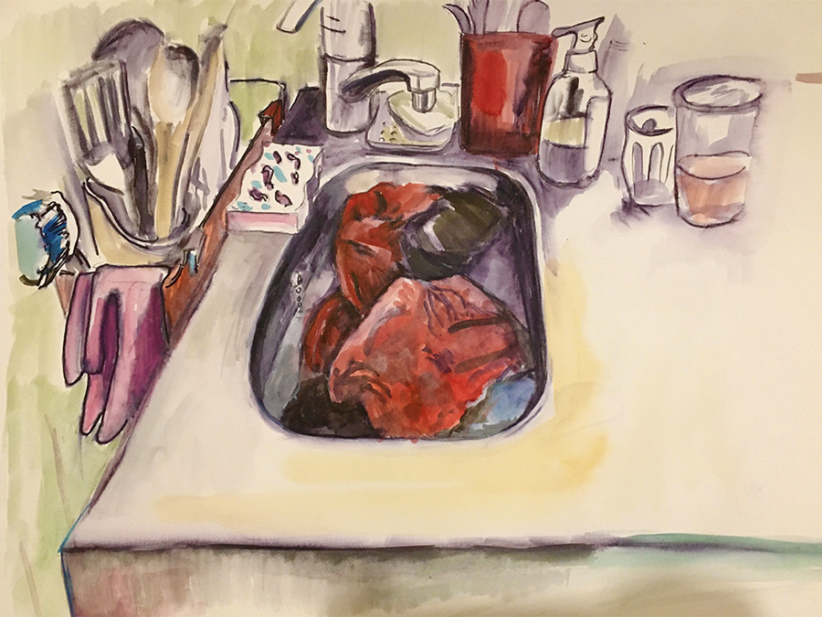From the beginning of the lockdown, I've been drawing and painting approximately one view per day of something that catches my eye in my limited domestic space. I'm picking out a few of my favorites to give an idea of the progression. I'll surely be sending more soon!